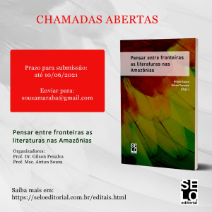 Está com chamada aberta o livro "Pensar entre fronteiras as literaturas nas Amazônias" organizado pelos professores Gilson Penalva e Airton Souza.A obra visa reunir em uma antologia artigos científicos ligados às literaturas nas Amazônias. O livro "Pensar entre fronteiras as literaturas nas Amazônias", que será publicado pela Selo Editorial, de São Paulo, receberá apenas 10 artigos para o primeiro volume. Para quem tem interesse, basta acessar o edital no site: