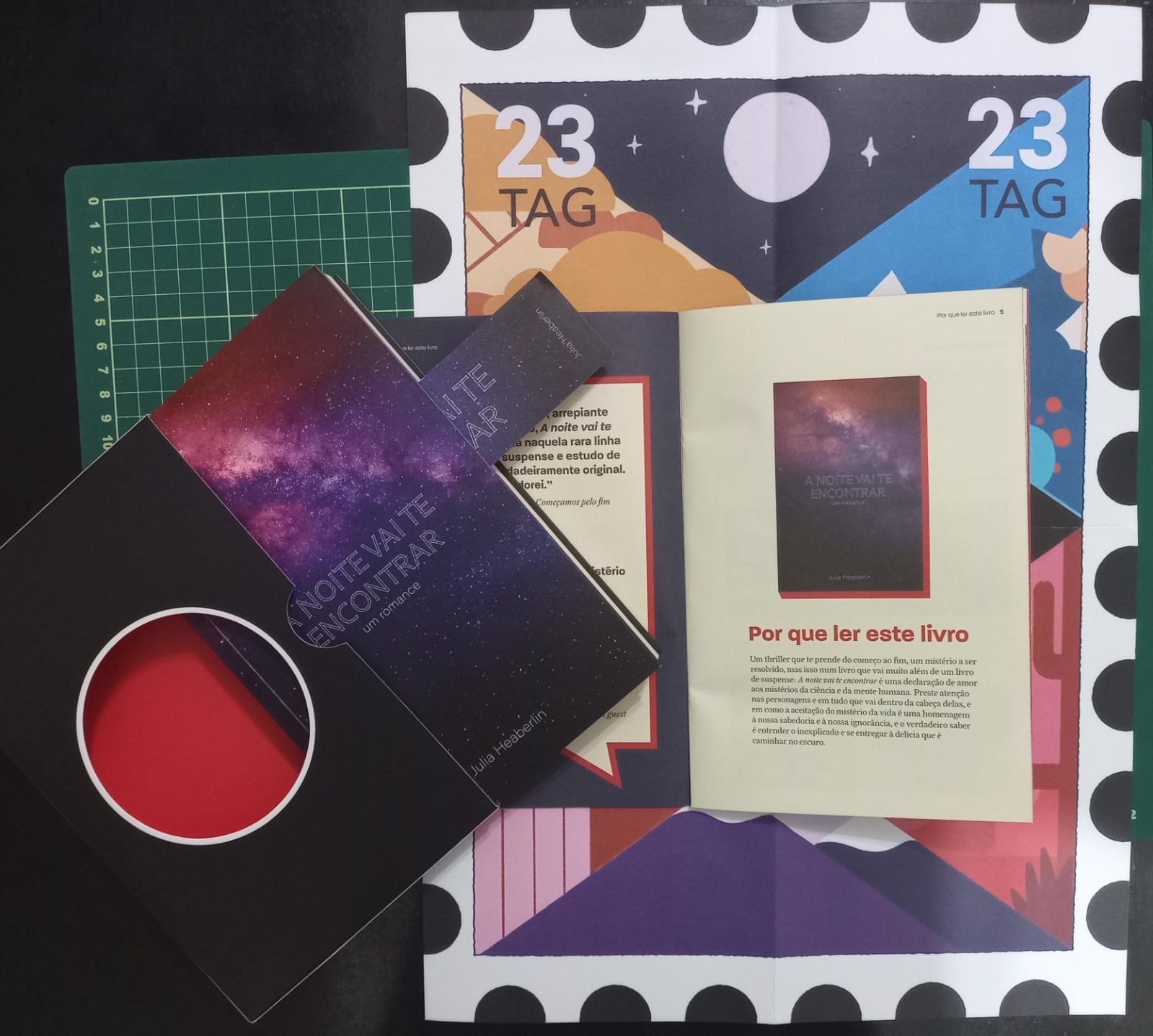 Estou vivendo minha primeira experiência TAG. Fiz a assinatura do plano Inéditos, já recebi meu primeiro kit composto pelo livro “A noite vai te encontrar”, de Julia Heaberlin, marcador de páginas, um encarte sobre o livro, um cartaz e os brindes de boas vindas: uma agenda (não me agrada chamar de planner) e uma luminária.